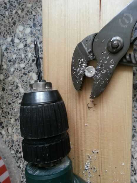 3. perforar con herramientas de metal de 4mm un agujero dentro. cuidado para no estropear la pieza de lomo.