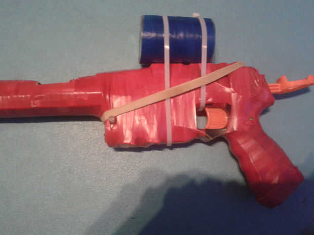 este es mi nerf nite finder han quitado los restrictores de aire y tienen streched afuera en la primavera tal vez dispara doble lo que hizo. bien así que aquí está el registro de im razón necesito ayuda tratando de convertir esto en un rifle para la