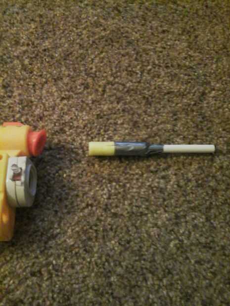por favor ir fácil en mí porque esto es mi primer instructable. Esto es similar a la modificación de carrtoon en nerfhave, pero fue invención independiente (no utilizar su mod).Aquí hay un video de él disparando contra y derribar un blanco de espuma
