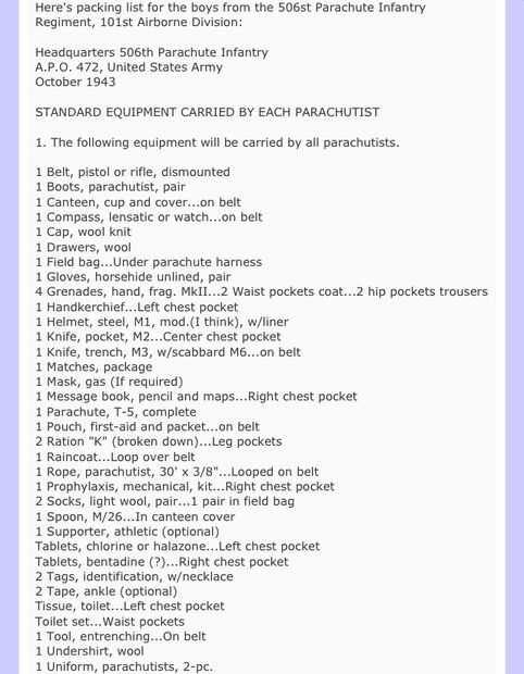 Esta es una lista de una norma nos jut de engranaje paracaidista WWII por interés.
