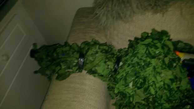 Doblar las formas de longitud de red y poner el cañón a través de la red y rodar unas 3 veces. El tirón del resto de la red sobre el resto de la pistola. Ajustar para que la cabeza y los hombros pueden ir debajo de la red y que el barril y el alcance tienen una clara línea de vista...