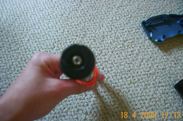 ok, ahora sacar la plunger(first picture) y llevarlo aparte (segunda foto). sacar el tornillo que sostiene la tapa en (tercera imagen). Ahora tome la off(forth picture) primavera. Ahora, no tengo un resorte de repuesto pero debe acoplamiento del muelle NF con el resorte de TT.
