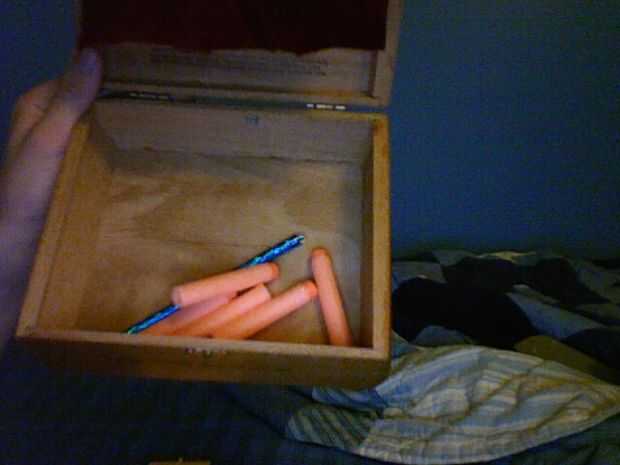 un día estaba disparando mi armas de NERF, y una bala voló en un lugar con un montón de conejitos de polvo. Me caminó a la bala, disparó otra vez y "POOF!" Parecía la pistola había emitido escape. Yo pensé, "que era más cool lo alguna vez..
