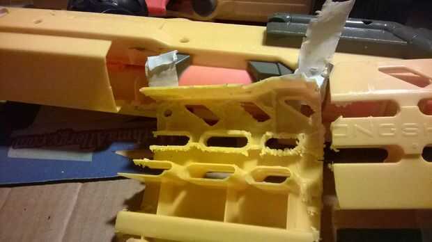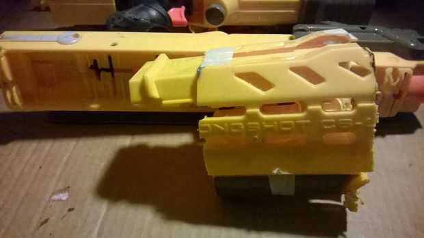 Yo también reutilizó parte superior delantera de la pistola que se utiliza para conectar a la parte delantera de la longshot como una extensión.