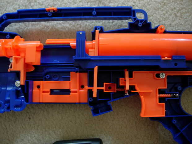 Lo pasado es tapar el agujero en la parte inferior del inicio del cañón. Usted querrá tener mucho cuidado al hacerlo. Es justo después de la botella de naranja y mantiene la presión dentro de la dart se "fuera de"control. Lo que esta cosa tomar todo el aire que la primavera acaba de hacer y echar la mitad en la basura. Este agujero del lacre le permitirá lanzar más aire en el dardo, aplicando más fuerza y dispara más rápido y más lejos. Esto es lo que realmente le ayudará a tus amigos del verdugón.