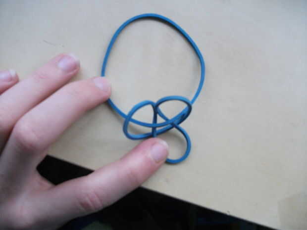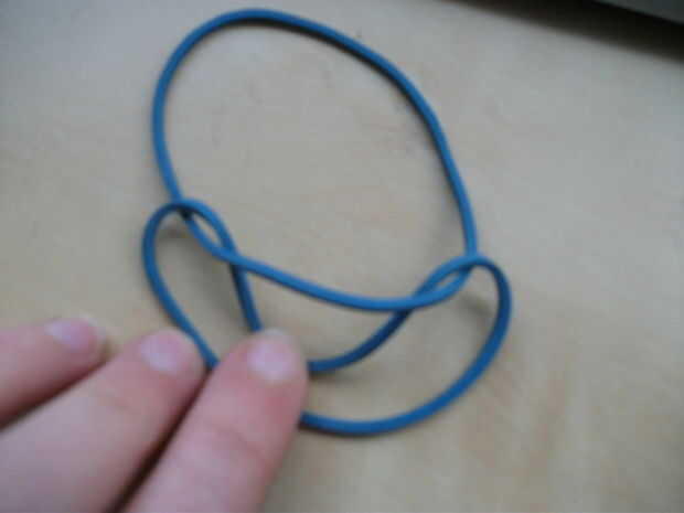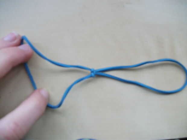 3-tire el final que le has puesto debajo de la otra banda de nuevo para arriba a través del lazo y tire firmemente.