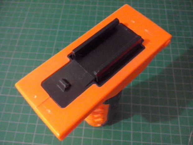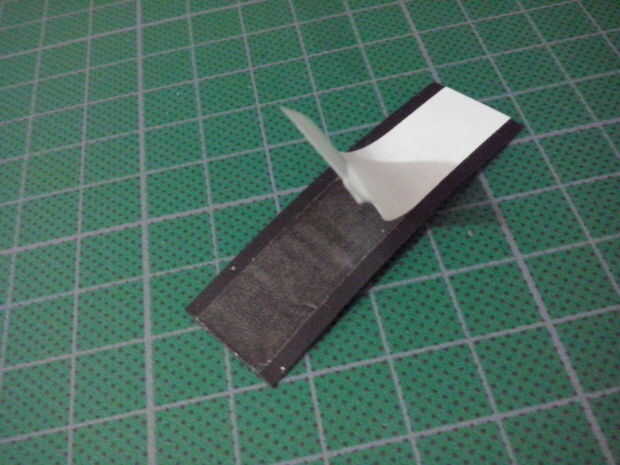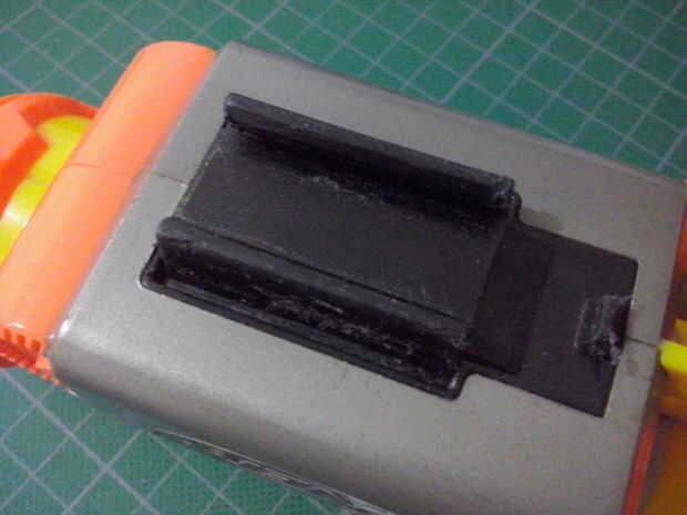 Simplemente corte una tira de 3 x 1.7 cm, adherir el grifo de doble cara, cortar el exceso y pegar sobre el nerf accesorio, este relleno el espacio entre piezas, usar sobre la empuñadura, blaster montaje stock parte y monumentos, con impresionantes resultados.