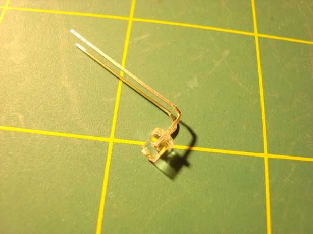 Eres la necesidad de ir una UV LED de 3mm y doblar las puntas en ángulo de 90 grados como se muestra en la foto.