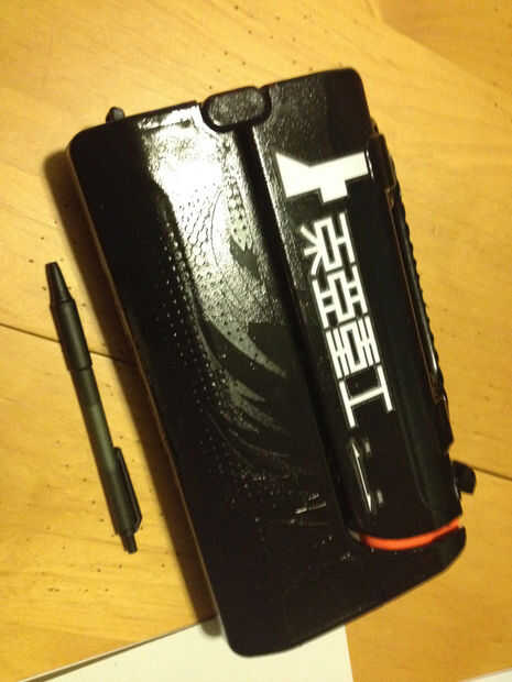 Ya planeé desde el principio para agregar un logotipo de calcomanía de papel. Decidí ir con Tohá Heavy Industries de historias de Biomega/culpa de Tsutomu Nihei; el blaster es compacto, cuadrado, y usan de sus protagonistas sorprendentemente poderosos como las armas, por lo que parecía una buena opción.