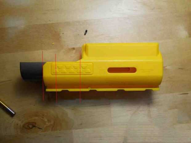 vi un mod de foregrip recon en www.nerfhaven.com pero fue screwd a la pistola y como me gusta usar la pistola sin el barril que no buen mod para mi.Así que decidí hacerla extraíble. Este es el resultado:(Se me olvida hacer fotos en procesan por lo qu