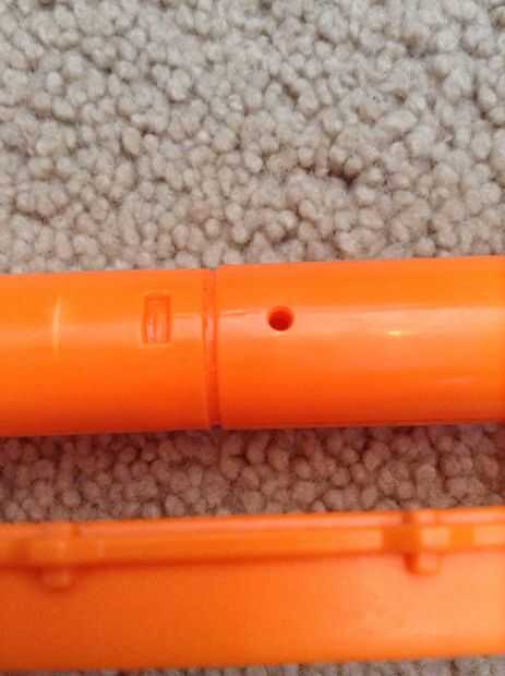 Este es un simple mod para que la luz de la NERF Recon ajuste el NERF Stampede.Paso 1: CutcutcutCorte a lo largo de las líneas rojas. Se puede utilizar una Dremel cortar ruedas, dejando una pequeña cantidad de plástico extra. Entonces utilice algunos