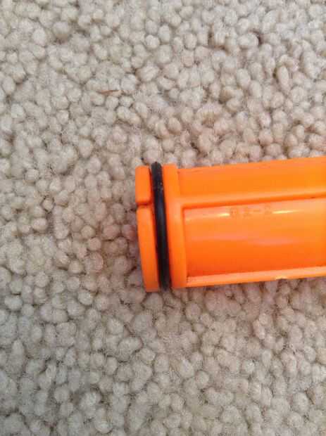 Para fijar el sello que tenemos que hacer dos cosas en primer lugar allí es demasiado pequeños agujeros opuestos cerca del frente de la Asamblea de trineo perno que simplemente cinta adhesiva sobre ellos para bloquear el aire de salir. En segundo lugar hay un anillo en la parte posterior que es manera de tamaño insuficiente lo que tenemos que hacer es quitar la junta tórica, cinta alrededor de la Asamblea entonces coloque la junta tórica detrás encima de la cinta.