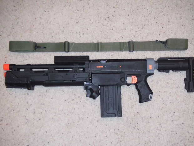 Reemplacé el reconocimiento principal blaster con la contraparte directa del émbolo retaliator para darle mayor alcance y había substituido el clip super con el nerf hecho 12 dardos clip y había pintado.