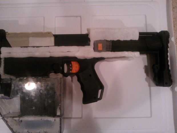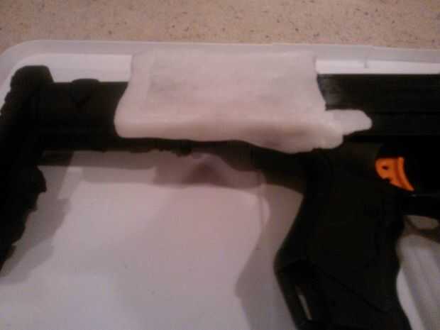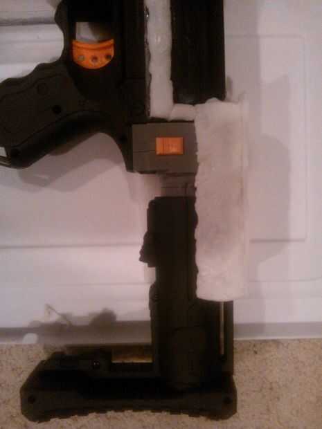 También cortar algunos de plástico bajo el cañón de la pistola de frente y había añadido algunos instamorph.