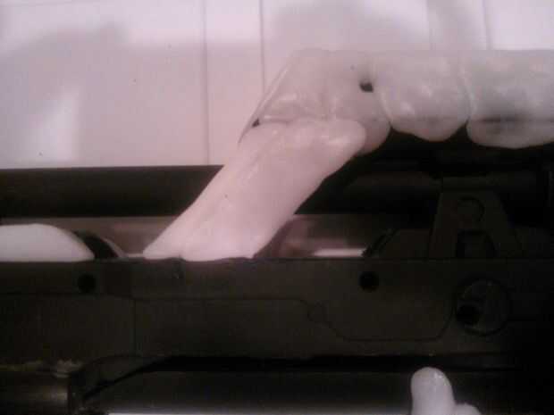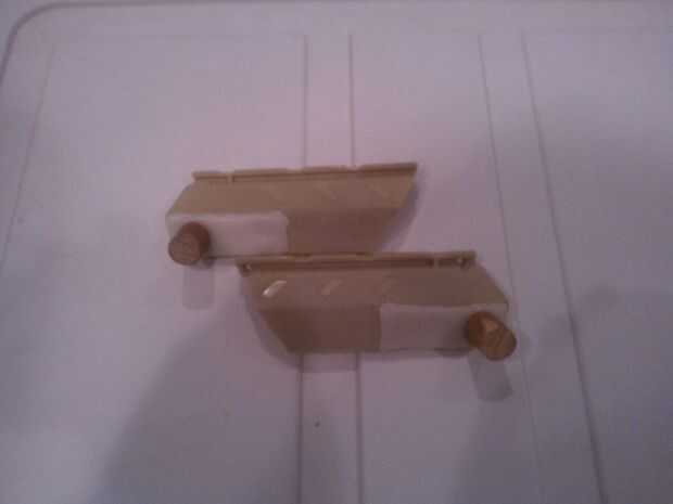 El perno no es tan difícil. Me tomó 2 clavijas de madera y cortar hacia abajo luego perforados en ellos para posteriormente atornillar en ellos. He perforado en las piezas seleccionadas de la diapositiva de cebado y girar tornillos en ellos y los tacos luego pegan en su lugar. Usando una pinza ayudarán.