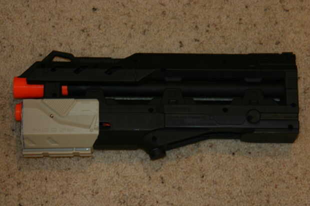 6. Pruebe, si cabe, pones el tornillo y si todo está bien tiene su auto una bomba LSFG que puede contener archivos adjuntos de carril táctico de cualquier NERF.