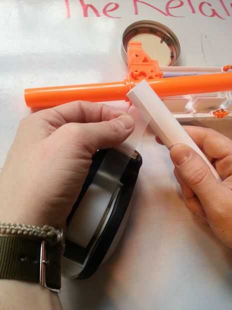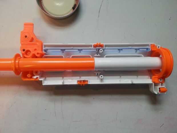 El barril de papel no necesita ser super exacto, simplemente la globo ocular y rasgar el papel a la longitud. Si no estás muy bien con rasgado de líneas rectas, coge un par de tijeras para un corte rápido. El papel de rodillo en aproximadamente el mismo tamaño de tubo como el barril interno y cinta adhesiva en su lugar. Vea las imágenes de cómo lucirá y entra en el barril el barril de papel.