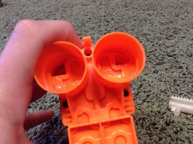 Hay 4 tornillos que sujetan esta parte frontal. Aflójelas y no perderlos. Luego levante la pieza frontal. Si resiste, usa una cabeza plana Destornillador para apalancar apagado. Habrá los restrictores de aire detrás de esto. NO ARROJE LEJOS O QUITAR LOS RESTRICTORES DE AIRE. Esta arma utiliza el sistema de restrictor de aire inteligente, así que a menos que quieras una escopeta 8-shot (fresco, pero poco práctico), no deshacerse de ellos. A continuación, quitar los muelles, pero mantenerlos y asegúrese de que no dañarlos. Luego quitar los restrictores de aire real, pero otra vez, no perderlos.