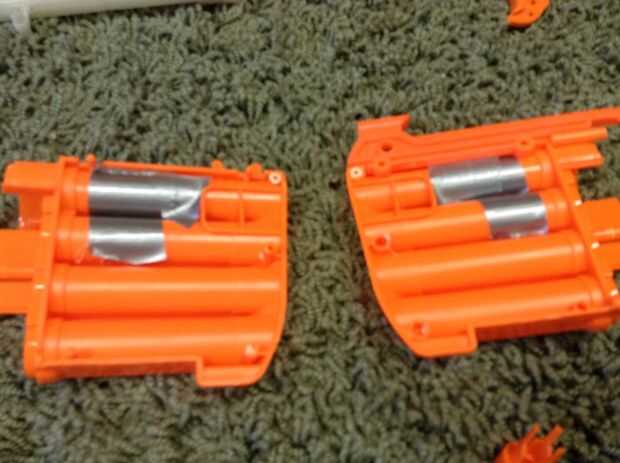 Pistola de Plasma de Sir Corvus es mi Nerf Vigilon Mod. Fui con el Vigilon rebelde por muchas razones. Me gustaban los discos y su silueta mejor, pero sobre todo hacerlo más. Primer paso es romper la pistola aparte sin perder ninguno de los tornillos