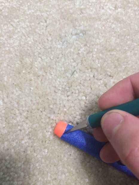 morder la cúpula del dardo o usar tijeras. puede utilizar un cuchillo x-acto para que sea preciso.
