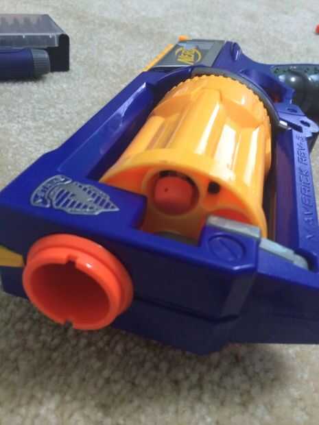 Tomar la salida montada y pegarlo en la pistola. Esto funciona en todas las armas Nerf accionado por aire, pero no funcionará en armas volante accionado como el stryfe y el rapidstrike.