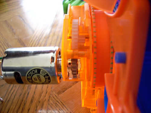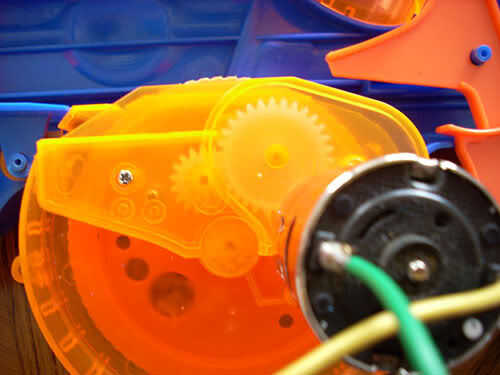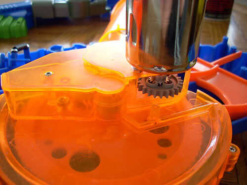 Ahora, vuelva a colocar el panel naranja con el motor recién montado. Asegúrese de que los engranajes que girará libremente con como poco pulido como sea posible. Deberá ajustar los agujeros de montaje. Sé que hice. Ver imagen 2 y 3.