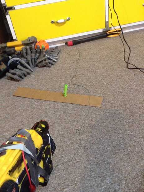 estaba en Walmart he visto algunos Nerf armas y justo en frente de ellos fue algunas herramientas de la bici, así que me vino la idea a hacer mayor potencia Nerf pistola que podía encender a un condensador. Este es un método rápido y ahora que lo he