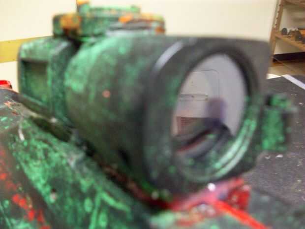 Básicamente quitó al otro lado de algunos baratos 2 x binoculares de juguete y dibujó un pequeño punto con marcador.