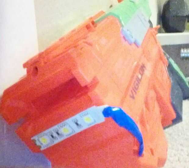 me encanta brillan en lo oscuro y cuando me enteré que Nerf tenía dardos Gita me compré mi primera pistola de Nerf en noviembre de 2012. Fue el Nerf Nitefinder. Lo consegui en ebay e inmediatamente se puso a trabajar modificando con luz de LED de los