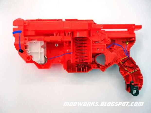 *** voltaje MOD ***16.8V y 12.6"Siempre volver a cablear los motores y retire cualquier inductores proporcionados por nerf si desea el máximo provecho de su arma"No voy a mostrarle cómo volver a conectar los motores porque hay un montón de buen
