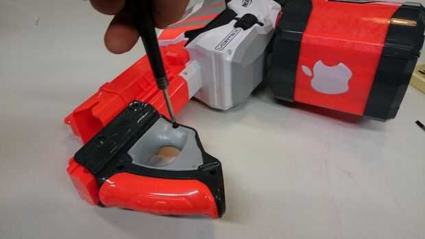 aparte tomé mi pistola de nerf del disco y cambió la posición del resorte de modo que sería más pretentioned y así tener más fuerza.el pic. demostraciones necesitan herramientasPaso 1: primero sacar el tornillos se muestrala caja negra al lado de la