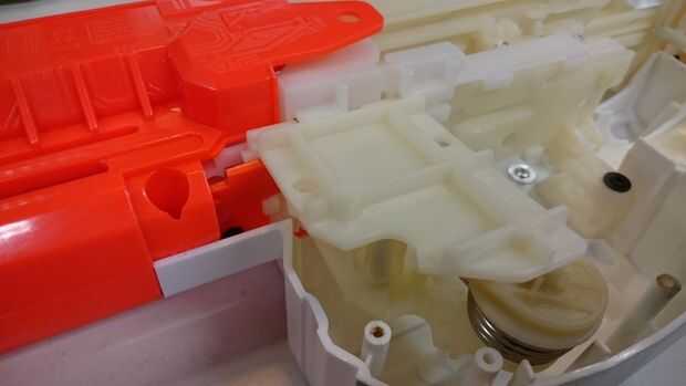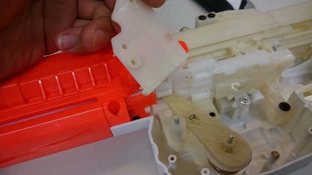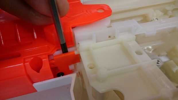 aparte tomé mi pistola de nerf del disco y cambió la posición del resorte de modo que sería más pretentioned y así tener más fuerza.el pic. demostraciones necesitan herramientasPaso 1: primero sacar el tornillos se muestrala caja negra al lado de la
