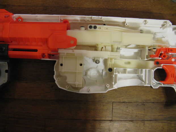 este instructable le trae en detalle a través de la mod Vigilon completa, incluyendo el retiro de dispositivos de seguridad, aumentar la tensión del resorte de torsión, sin necesidad de la eliminación completa de montaje de la culata/cámara e incluye