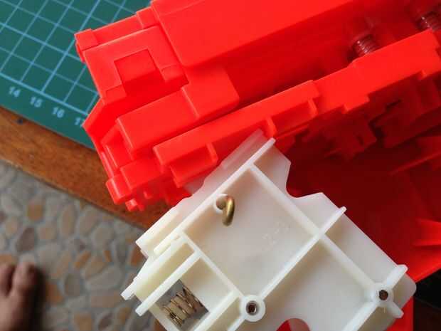 Necesitará empujar todo el conjunto contra la palanca del resorte principal (ya sabes por qué media carga el arma y poner esa varilla de metal) con firmeza Deslice el conjunto hacia adelante.