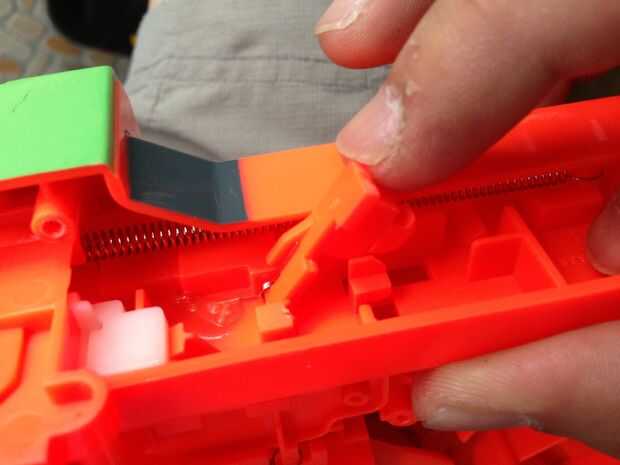 3. use sus alicates (o sólo los dedos) para sacar estos niveles girándolas. Recuerde quitar los resortes totalmente (en vez de dejarlos caer el arma, confundir alrededor y puede provocar atascos en el futuro)