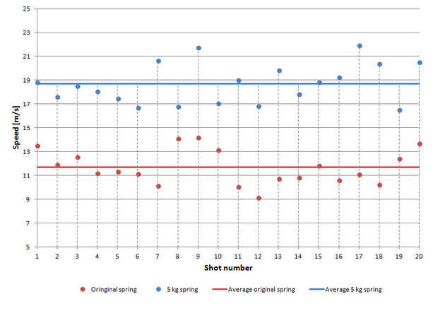 En mi opinión, un resorte de 5 kg funciona mejor (la original es un resorte de dos kilos). Probé un manantial de kilo 7 en uno, y aunque era fuerte, dio lugar a un montón de leña mal.