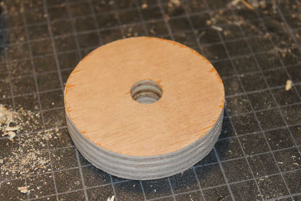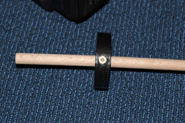 Perfore un orificio para el poste de madera a través del orificio de tornillo marcado en la primera foto. Un disco con un diámetro de 6 cm de la madera de 1,5 cm y taladre un orificio de 12 mm en su centro. Pintar el disco y colocar el polo a través del orificio. Asegúrelo con un tornillo, como se muestra en las fotos. Propongo que el polo de la pintura después de que usted haya depositado en los cojinetes, de lo contrario no podría caber. Coloque la varilla por la pistola de Nerf y el disco de madera para el plástico del pegamento. Utilice dos tornillos para sujetarla.