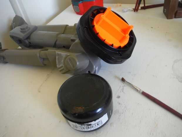 Cuando Armando esta vuelta recomiendo reemplazando el resorte viejo con un tanto pesada, esto en completamente opcional, pero después de jugar alrededor con ella aprecio la fuerza tuvo que sostener una posición. Porque enarenada apagado el logo en el lateral de las piernas donde no pinto, decidí retocar con un cepillado de la mano de pintura acrílica. Entonces la segunda tuerca y los partidarios de dos puede ser pegados en la cabeza da vuelta, el perno puede entonces fijarse en cuando el pegamento seque. Después de armarla completamente me di cuenta de que la brecha en la cabeza no era tan bonita para que esta había pegado con cinta aislante de algunos. De lo contrario la construcción es completa! He disfrutado mucho jugando con este trípode y aunque pequeña puede ser utilizada para todo tipo de ángulos, y definitivamente recomiendo dando a este un intento, si no se puede uso para su viejo trípode de volcan.