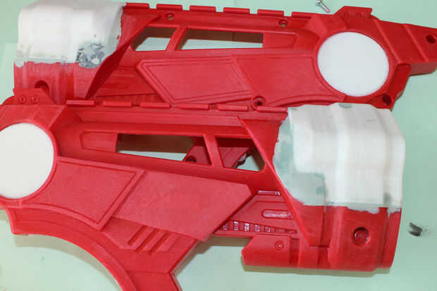 Use pegamento y expoxy masilla para pegar los nuevos pedazos de cáscara en lugar. Como se puede ver en las fotos también había quitado las "alas" de la whiplast y llena los huecos de la pieza "circle.stl".
