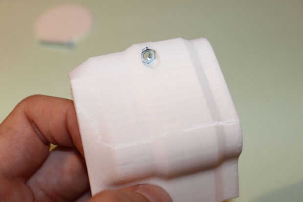 Empezar por imprimir todas las piezas necesarias. Añada la tuerca a la pieza de cáscara recién impresa.