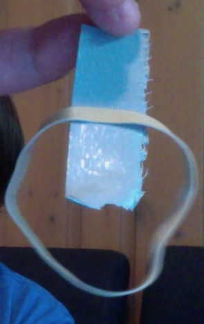 1 puesto de 1/4 de la banda de goma hasta la mitad a lo largo de la pieza de la cinta