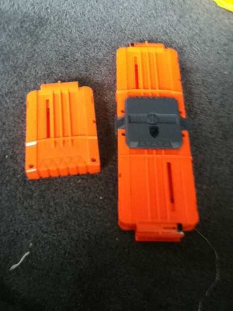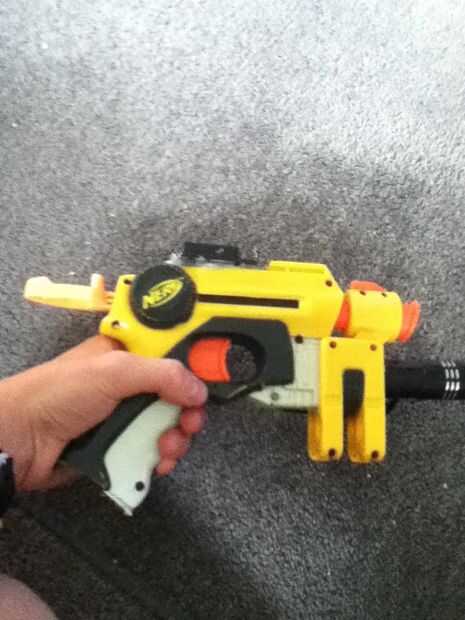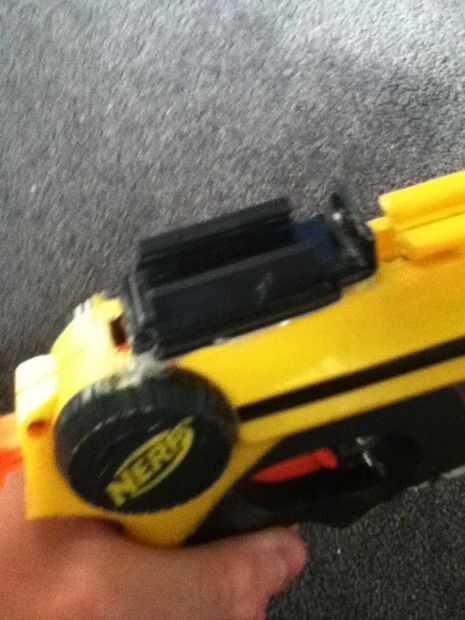 Se trata de mi primaria. Es un modded Nerf recon con una integración nitefinder. El nitefinder está en un carril de tacto y tiene una antorcha en el mismo. La acción y el barril son sin modificar, pero he añadido un punto de Honda al cañón. Hay un láser en la parte superior.