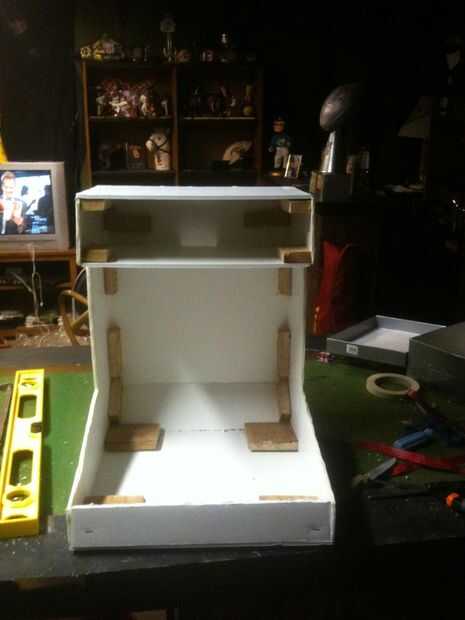 Medí lo que quería para las paredes y cortar, luego tomó pedazos de madera y conectado hacia el lado con una engrapadora para hacer el armario, agradable y constante.