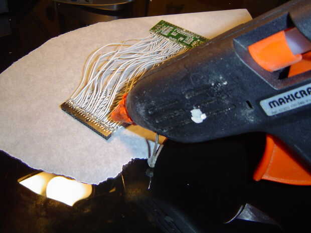 El mini usb de la soldadura, una vez más utilizo la pistola de pegamento caliente.