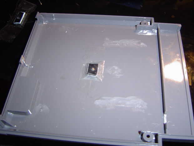 Corté un pedazo pequeño de plástico, un tornillo (se redujo) para obstruir el orificio del medio (y también para los pequeños detalle...), lo soluciono el plástico con el tornillo interior.