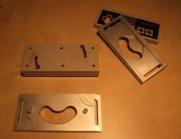 Cuando se muele la hebilla NES hay que destacar dos cosas. En primer lugar, los laterales tienen que ser al menos tan largo como el cinturón de un en segundo lugar se necesita un mecanismo para mantener el controlador en el lugar. Se utilizaron dos tornillos donde puede girarse el regulador en y dos pequeños levantamientos en el aluminio para darle más agarre.