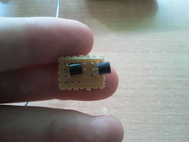 Nota: podría soldar los transistores directamente uno al otro y ahorrar espacio, no hacerlo, sólo pensaba de esto después.