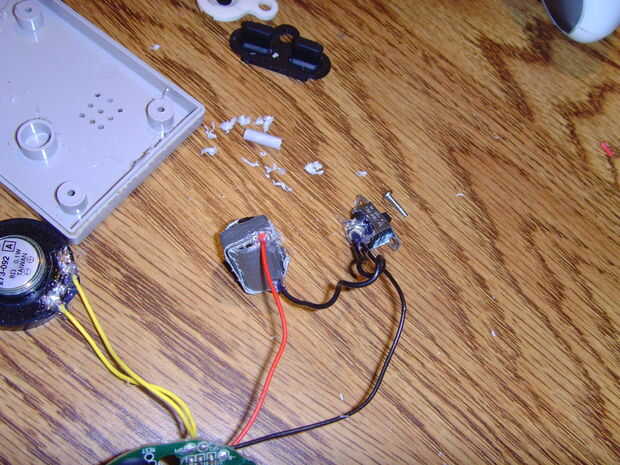 Usar los cables rojo y negro que vienen de la Junta de llavero, suelde el cable negro a una de las conexiones del interruptor. Luego, soldar otro cable negro con la otra conexión del interruptor. Este cable llevará a la terminal negativa de la batería. Conducto-graba las baterías juntos para completar el circuito en este punto.