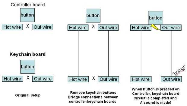La segunda imagen muestra los sonidos cada uno del botón llavero hace y cómo los cableados a los botones del controlador, FYI.