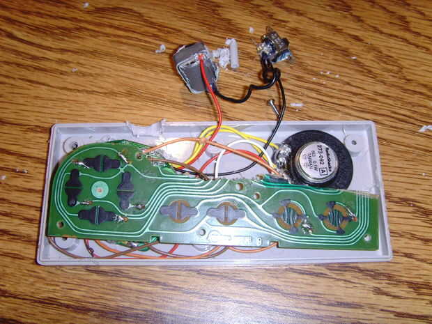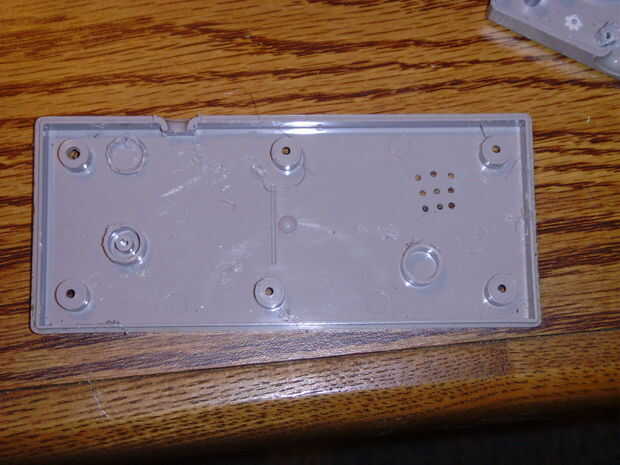 En primer lugar, recortan la cubierta posterior del controlador un poco. Quité un trozo de plástico que estaba en el camino y perforado unos agujeros de 1/16" donde el orador iba a ser para permitir que el sonido escape (aunque lo 's bastante fuerte para comenzar con!).